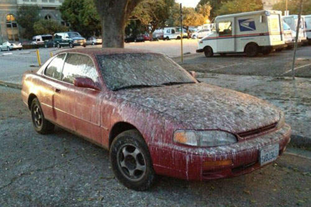 鸟屎!全车都是鸟屎!鸟屎对车漆的损害有多大我想大家应该都知道,如果赶上倒霉,树枝断了砸到你的爱车,先不说保险赔不赔偿的问题了,不仅耽误了你的行程还影响你的心情!