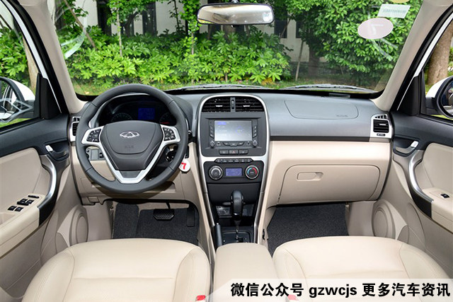 瑞虎3的内饰设计比较简洁大方,全系标配 ABS、制动力分配、多功能方向盘、车顶行李架等,而不同配置车型还配备ESP、GPS、电动天窗、定速巡航、倒车影像等配置还是比较厚道的。