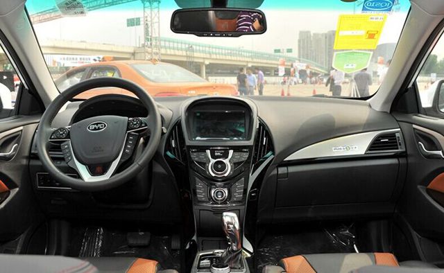 内饰部分,2014款的比亚迪秦采用了蓝色与灰色搭配的色调,给人一种非常清新的感觉,中控台钢琴烤漆的部分也突出了内饰的时尚感。而2015款的比亚迪秦取消了内饰蓝色与灰色搭配的设计,变成了黑色与灰色搭配的色调,并配以黑色的钢琴烤漆饰条来提升质感,显得成熟而稳重,但是少了些许活力的味道。内饰风格和速锐很接近,总体看来秦的内饰非常中规中矩。值得一提是,比亚迪秦全系标配一键启动和电子手刹,在使用便利性方面,秦做得十分出色,而高配置也是比亚迪一贯的作风。