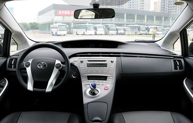 看完普锐斯的外观,现在说说普锐斯的内饰。刚才说到普锐斯的外观有点雷克萨斯的味道,那么普锐斯的内饰简直像极了雷克萨斯(真不愧是一家人)。采用不对称设计元素的中控台跟雷克萨斯的上一代RX非常相似。银黑搭配的内饰色彩显得充满活力与动感。仪表盘采用中央液晶显示屏,能够反映出非常丰富的车辆信息,信息显示的非常直观。换挡杆同样也是科技感十足,并且换挡杆也能发出蓝色的冷光,跟前后车标呼应。虽然普锐斯上市已经年头不短,但是这样充满未来感的设计依然新潮十足。