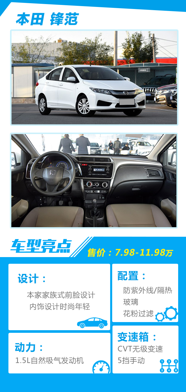 教授点评:以一辆年轻化的家用车标准来说锋范可以说做得不错,最新改款后的锋范在车身尺寸、轴距方面都有了一定的进步,已经从小型车的级别跨入到入门级紧凑型轿车级别中,而且锋范价格不高,内部空间充裕,作为家庭使用是个很不错的选择,动力方面采用了本田“地球梦”系列的1.5L发动机,动力响应良好,足以满足市区驾驶。