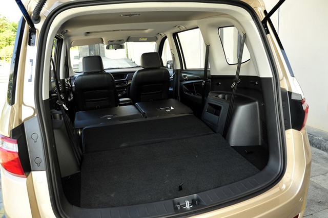 欧尚的座椅布置采用了232的形式,对于不经常使用第三排的家庭来说无疑是很方便的。但是想要出入第三排就显得有点尴尬了。