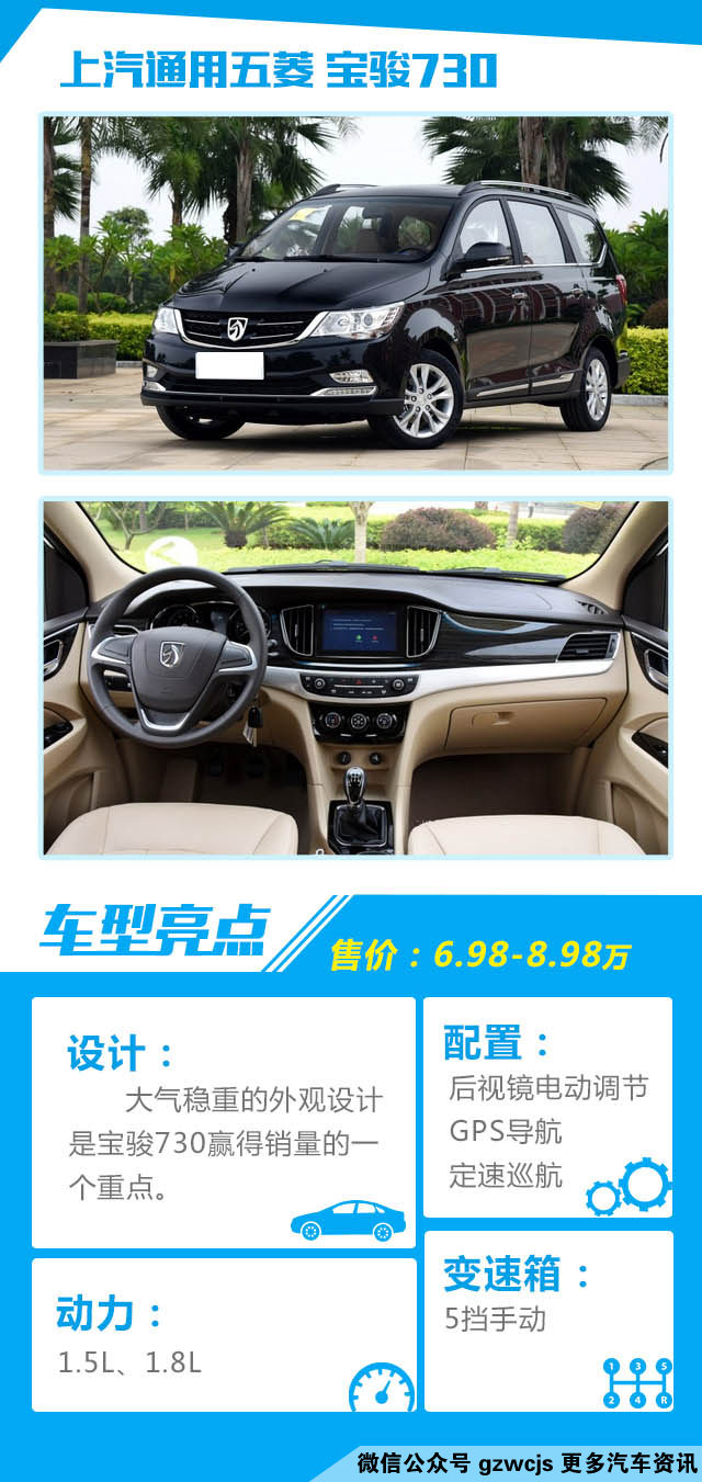 点评:提到MPV这个级别车型,还真不得不提宝骏730,它是这个市场数一数二的强手,月销量一直处于两万多台,外观和内饰以及配置都是加分项,不过价格当然也稍微高一点。