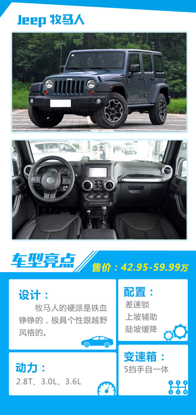 点评:独特、个性、越野、性能等等都是牧马人的代名词,确实只有经常自驾游及热衷于越野的人才会对它感兴趣,像教授这种只穿梭于城市之间只知埋头苦干的人还是开辆家用车好了。