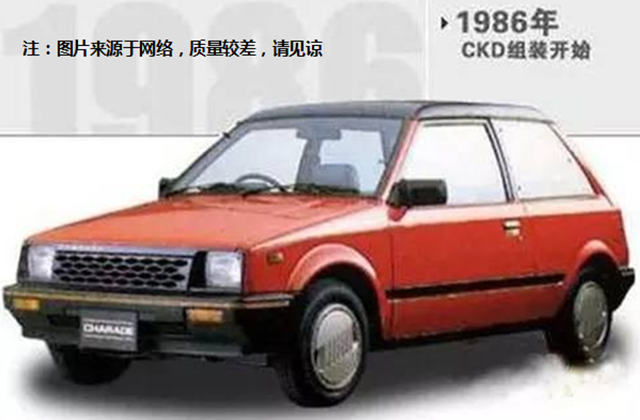 1986年,夏利开始以CKD的方式生产基于1983年款的大发第一代charade车型所开发的夏利TJ730,这款车型也是夏利建立以来批量生产的第一款车型。这款车的外观跟1983款的第一代大发chararde一模一样,全车85%的零件与第一代大发charade通用。由于夏利的这款开山之作的产量非常低,所以夏利TJ730在市面上非常稀有,到底有多稀有少见呢?关于夏利TJ730的图片教授在网络上就只找到这样唯一的一张图。暂且不用现在的眼光去评判夏利TJ730的外观好不好看,但是在当时大街上都是伏尔加,老上海,北京212,老解放卡车的年代,夏利TJ730这样一款小巧的两厢小车还是能让人眼前一亮的。