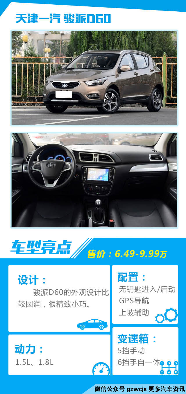 点评:虽然骏派D60销量没有多好,但其关注热度一直颇高,也许就在那差之毫厘之间,消费者们选择了其它车型。其采用的是丰田的发动机搭配爱信变速箱,在质量方面还是比较有保障的。还有说到逼格呢,这部骏派D60起售价为6.49万,就配备了无钥匙进入及无钥匙启动功能,当在停车场人家20万元的合资车型还在用钥匙或遥控开锁及打火的时候,你只需傲娇地走过去,轻轻拉开车门即可,这个感觉真是太美妙了!