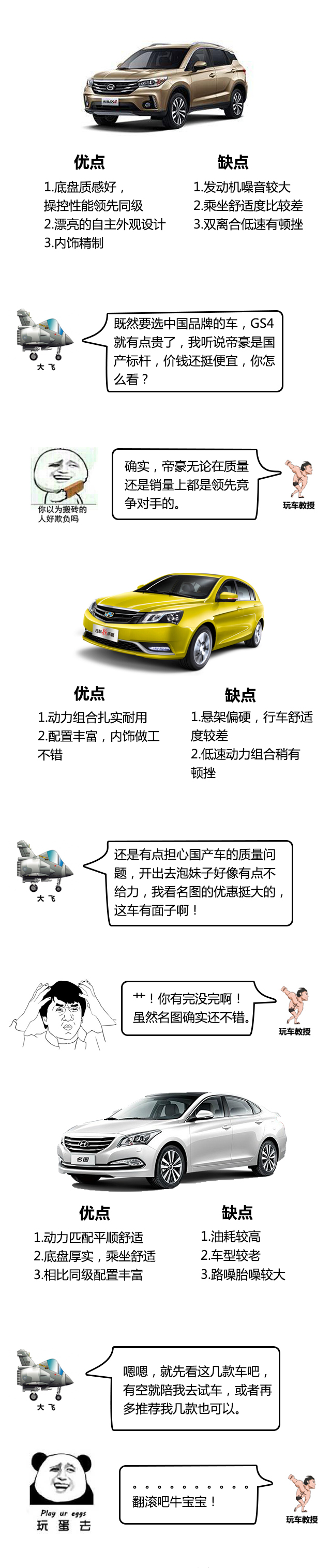 高尔夫、威朗、缤智、GS4、帝豪、名图,从合资品牌到中国品牌,从轿车到SUV,各种纠结,覆盖的范围不可谓是不广啊...