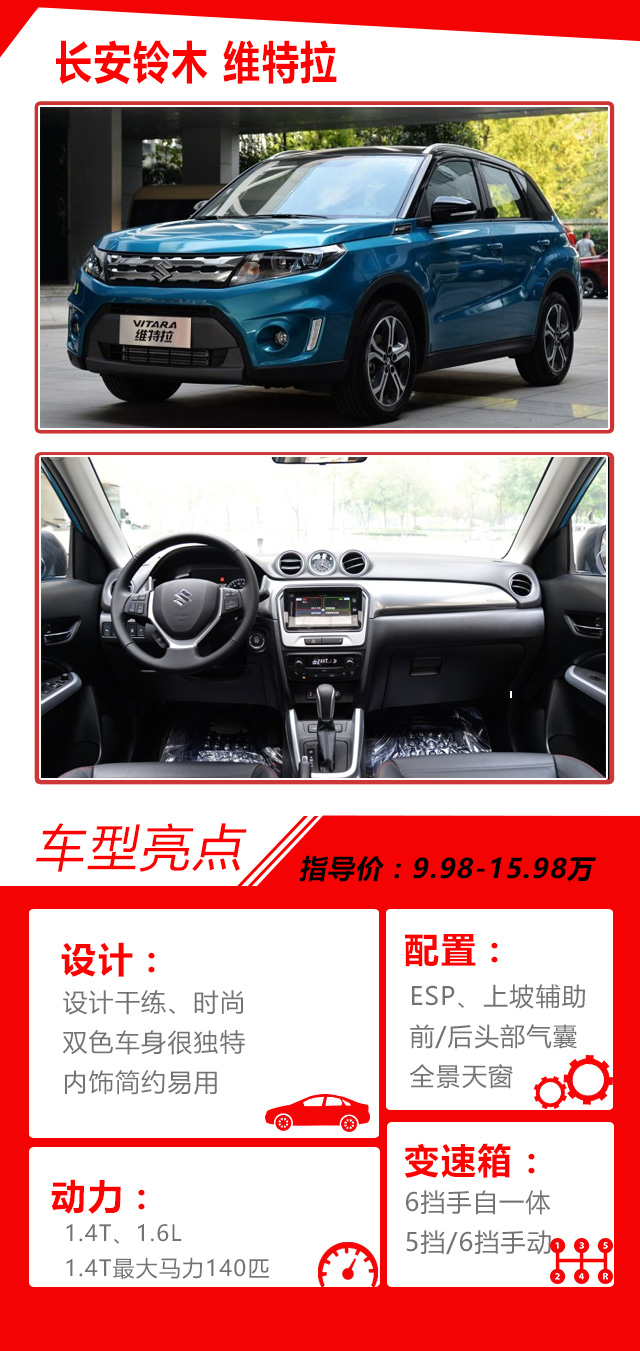 定价亲民,配置很丰富。它1.4T+6AT的动力总成,响应速度不错、动力比较强劲。而且油耗也能控制得比较低,所以维特拉适合买车预算不高的年轻人首次购车!