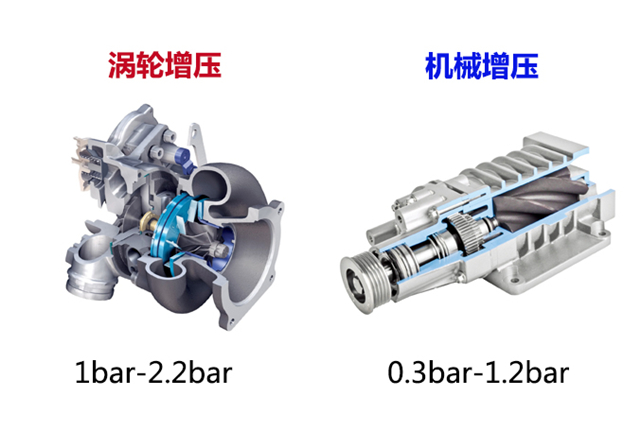 这就是机械增压最大的不足,所以为了避免过大的运转阻力影响发动机,机械增压的增压值必须控制在一定范围内。一般来说机械增压的增压值在0.3-0.5bar这个区间,最高也不过1bar左右,而涡轮增压随意都可以达到2bar的高增压值。