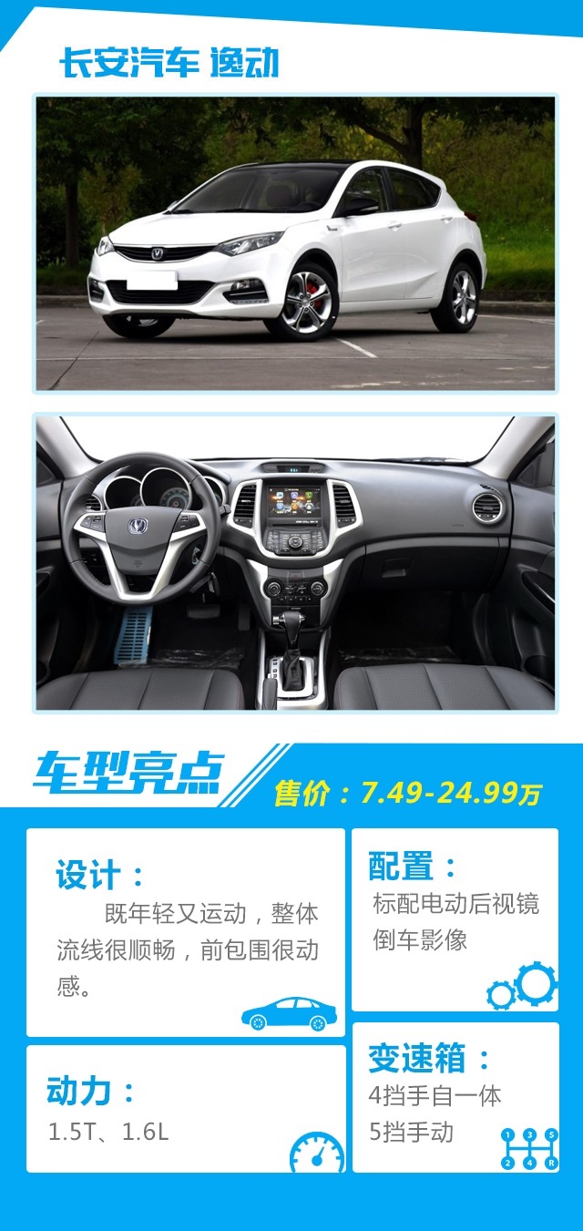 点评:其实长安汽车出色的车型挺多,不过CS75的成功盖过了长安其他的车型,但逸动的表现依然显眼,动感的外型设计,良好的驾驶感受,动力表现也很到位,足以媲美合资车型。