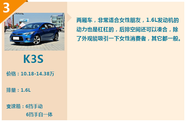 感觉还可以吧,我的2012款的K2目前0修理费,城市上下班代步基本满足,但是跑长途的话就感觉动力不足,底盘稍微有点矮,稍微不注意就磕磕碰碰,目前又入手一台2016款K3