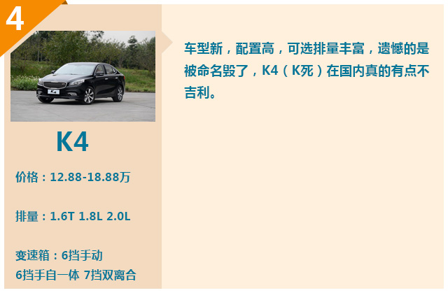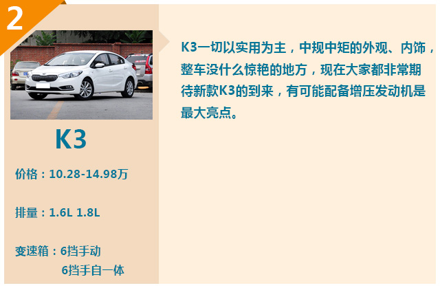 在2015年全年的汽车品牌销量榜上,东风悦达起亚的车型都卖得不错,而且K系列的命名方式也非常有特点,今天小编就给大家带来东风悦达起亚全系在售车型的点评。