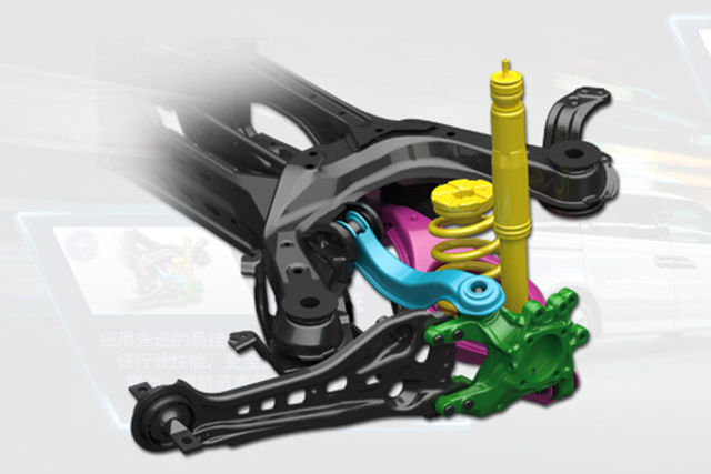 优点:设计自由度大,路面冲击对车身影响少,对舒适度的提高很有帮助。