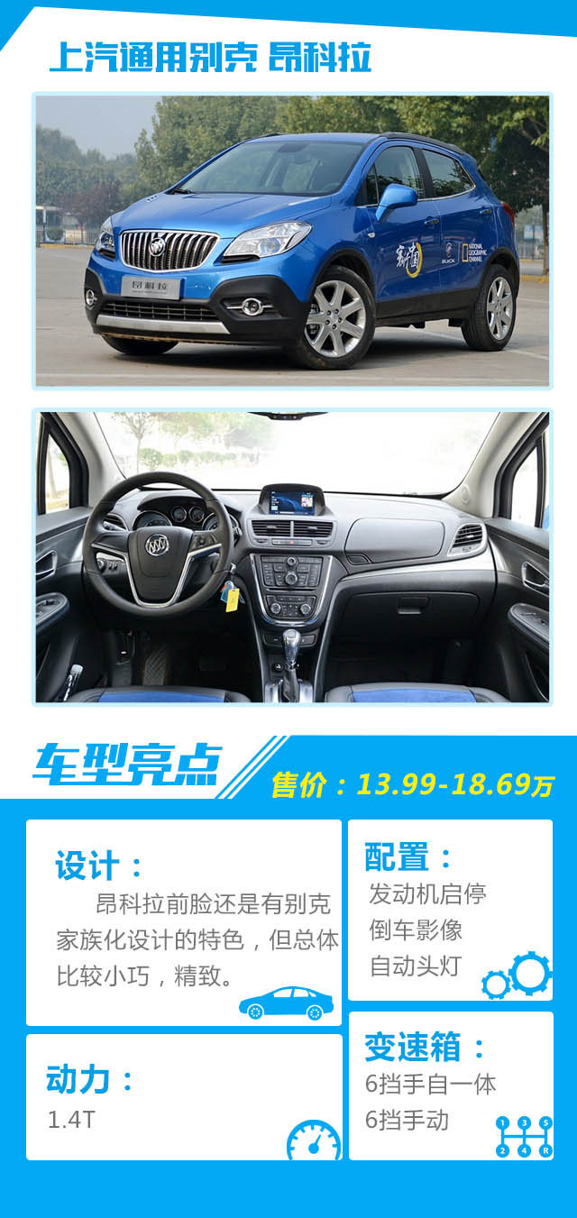 点评:昂科拉外观的设计在小型车里算很靓丽,而做工、用料、配置等也可以算是这一级别里的标杆,当然,变速箱逻辑不清晰的缺点已经被说了很多次了,其它方面都很不错,只不过对于其接近14万的起售价来说,确实贵了点,不过按目前市场的大幅优惠来说,昂科拉是个不错的选择。