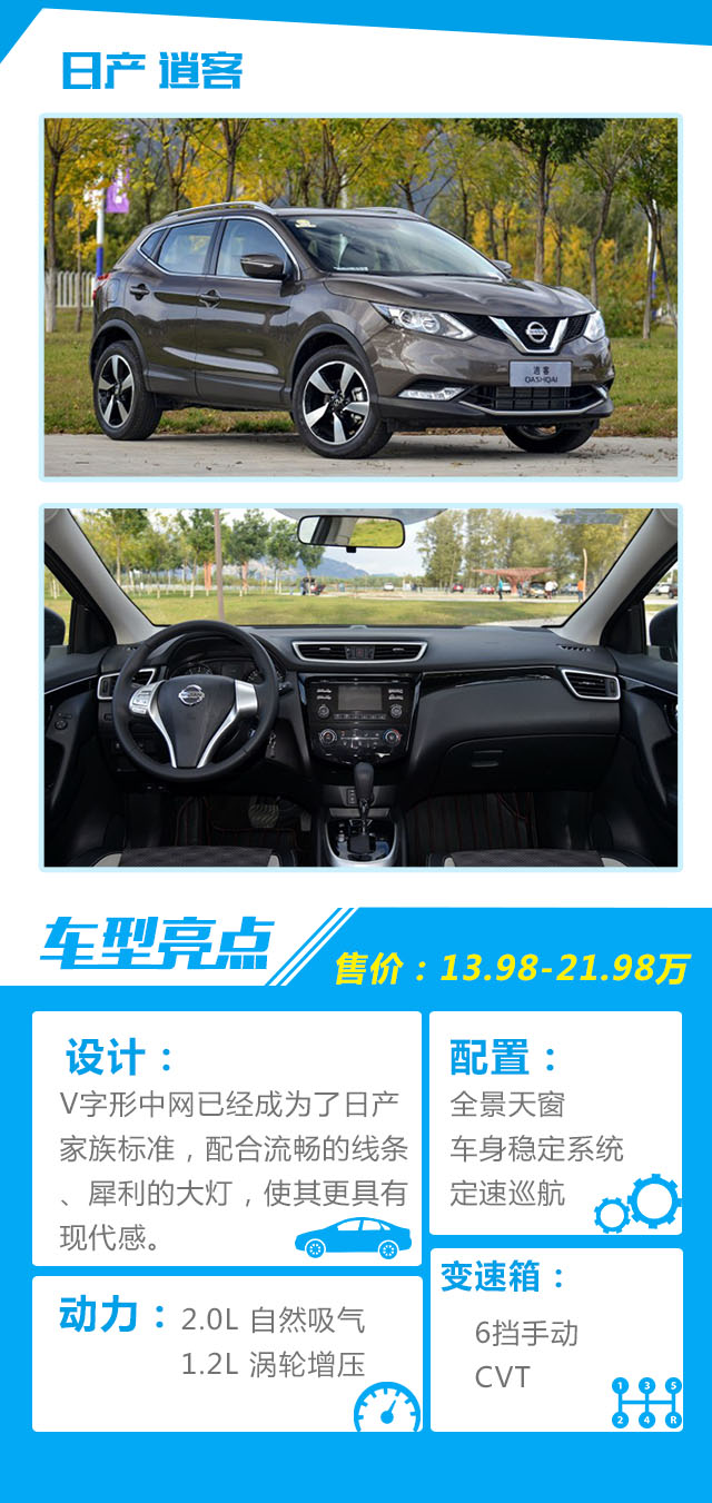 点评:虽然日系车一直主打的空间优势在逍客上没有得到体现,但是它有着时尚的设计、出色的底盘操控和平顺的动力系统,绝对可以满足大部分人的用车需求。不过有一些小细节是不是可以在后期改款时改进一下呢?