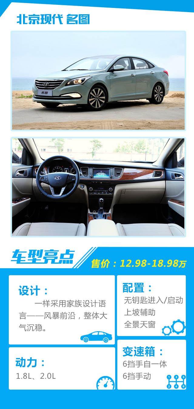 点评:韩系第一款入门中级车,如果追究名图为什么能卖得好,肯定跟它的售价区间有关系,填补了当时合资中级车在这个价格区间的空白,而且除了有较低的起售价后,兼顾了大空间、高配置,是一款很具竞争力的车型。