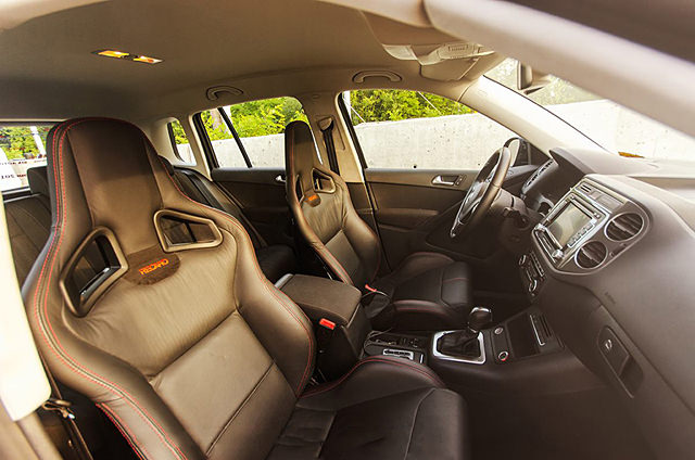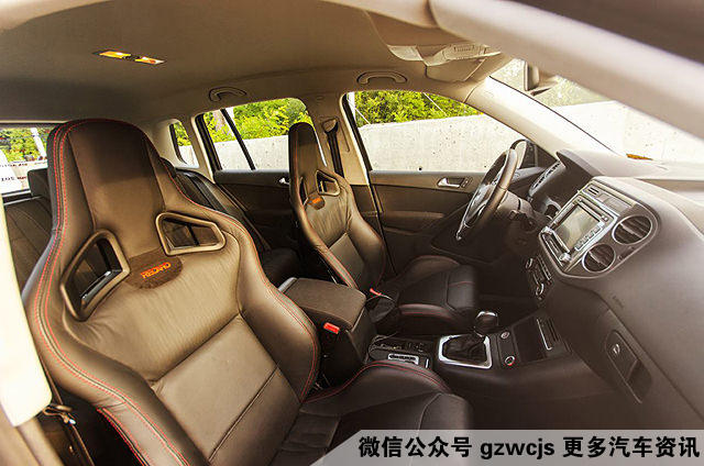 上图是改装后途观,主要改装了气动避震、vossen轮毂还有RECARO赛车座椅。