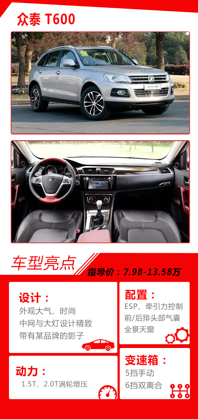 T600定位为中型SUV,售价却很低,再加上丰富的配置,确实是诱惑力不少!它的动力充足够用、空间大。而且也具备不错的舒适性。