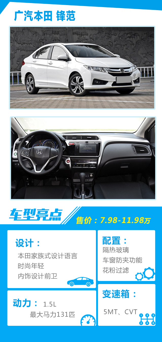 教授点评:锋范在近期进行了一次换代,现已定位为紧凑型轿车,在空间利用率方面本田做得相当不错,超大的乘坐空间作为家庭用车十分合适,而且锋范搭载了本田“地球梦”系列的1.5L发动机,动力表现良好,足以满足市区路况,另外锋范的同门兄弟哥瑞也是一位实力选手,不过选择低配锋范的配置不高,后期需加装的装饰品会较多。