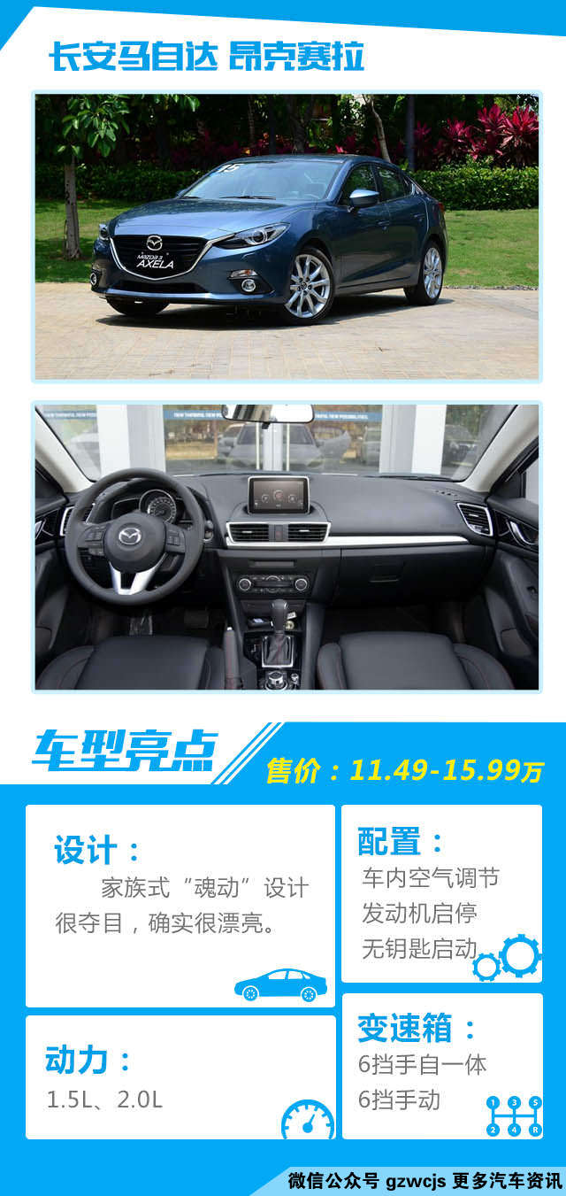 飘逸而凌厉的造型,昂克赛拉凭外观就征服了很多年轻人的心。虽然只有自然吸气车型,变速箱也是最平常的6AT,但是组合起来后的行驶质感却非常棒。