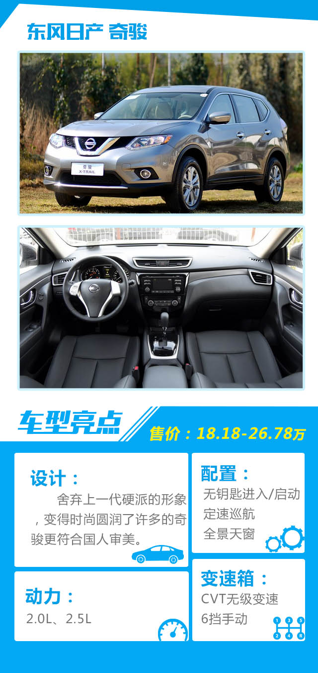 点评:奇骏身在紧凑级SUV市场,是出了名的大空间,其宽大的车内空间加上优越的舒适性是其强大的竞争力,也难怪奇骏销量能一直高居不下,稳坐SUV销量榜前十。