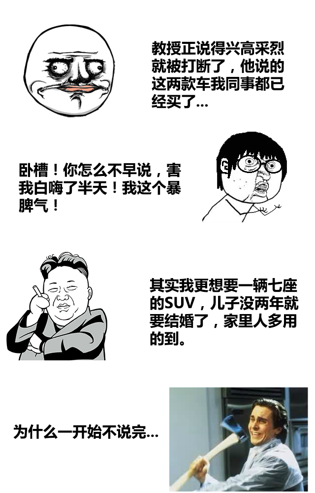 经过一轮的对比和讨论,他表示比较倾向锐界,考虑动力会更充沛,同时外观他也觉得锐界好看些。但由于家里本来的凯美瑞表现非常好,也想去看一下汉兰达。其实教授是最支持大家买车的时候多看,关键是一定要试驾,因为车子本来就很难判断绝对的好坏,只是每款着重的点不同,试过才知道哪个适合自己。