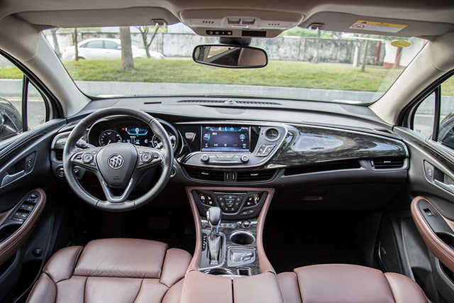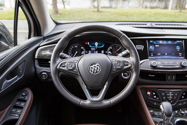 号称“途观杀手”的昂科威体型要比途观等标准的紧凑型SUV大出不少,因此在内部空间的氛围营造上有了更多的处理空间。昂科威的中控采用环抱式的设计,给予前排人员很强烈一体感。在中控台的T字区延伸至变速档杆位置都用了仿大理石纹路的饰板装饰,有着相当不错的豪华感。另外像车门上半部分、座椅、扶手箱、中控上方、中控侧方都用棕色皮革等软性材质包裹加缝线的处理,不论触感、观感都很好,在同级车型中非常罕见。