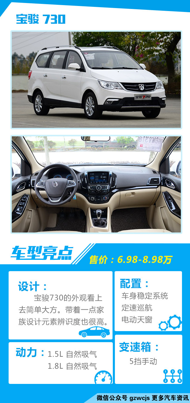 点评:宝骏730有一个称号叫作“神车730”,2016年第一个月就卖出了4万辆。对于一款不到十万的MPV来说,能够同时拥有ESP、导航、7座,而且通过众多车主的反馈,对于宝骏730的使用感受也是非常不错的。超高的性价比和车色的使用感受,宝骏730真的可以称之为“神车730”。
