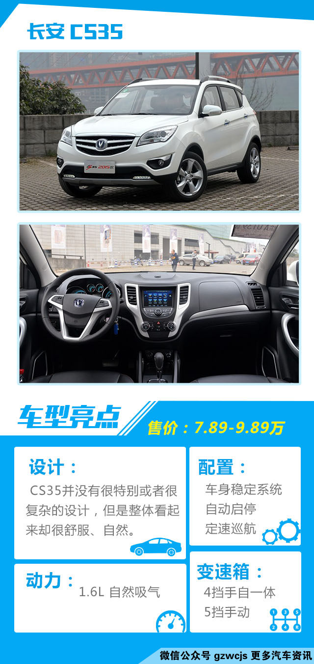 点评:长安CS35算是中国品牌小型SUV一名老将了,虽然外观并不是那么的出众,但是也不会让你挑出什么毛病,而且凭借着丰富的配置和长安一款良好的口碑,CS35也一直有着不错的销量。但是作为一款小型SUV,它的油耗表现有点欠佳。