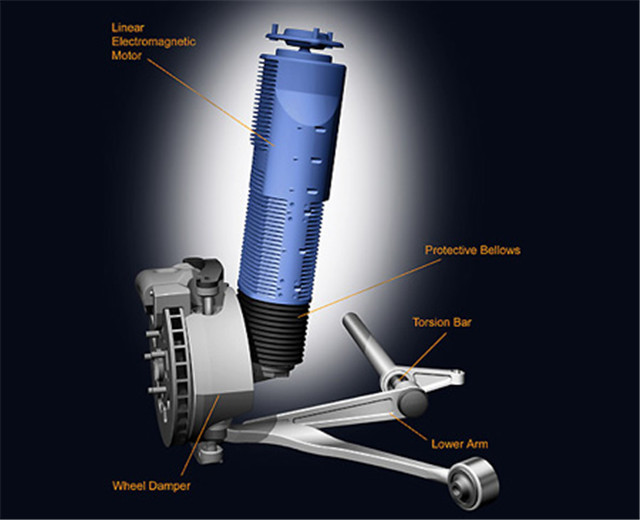 这货那可就先进了。简单说,电磁悬挂的内部没有液体,是一堆高科技的电磁材料,这些材料能根据输入给它们的电流的高低改变它们自身的特性,或软或硬,就靠电流。所以这种悬挂的工作原理那就很简单了,和上面一样,它也有传感器和电脑,电脑发出命令之后,悬挂执行器只要改变电流,就能改变悬挂硬度了。