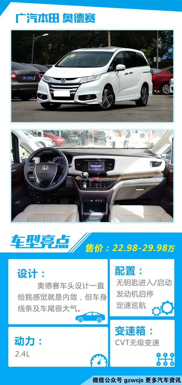 点评:由于奥德赛只有2.4L一款动力,所以选择上比较单一,不过相对来说还是够用的,只不过在高速上,由于动力储备不足,发动机噪音控制比较一般,但整体舒适性还是很突出的。