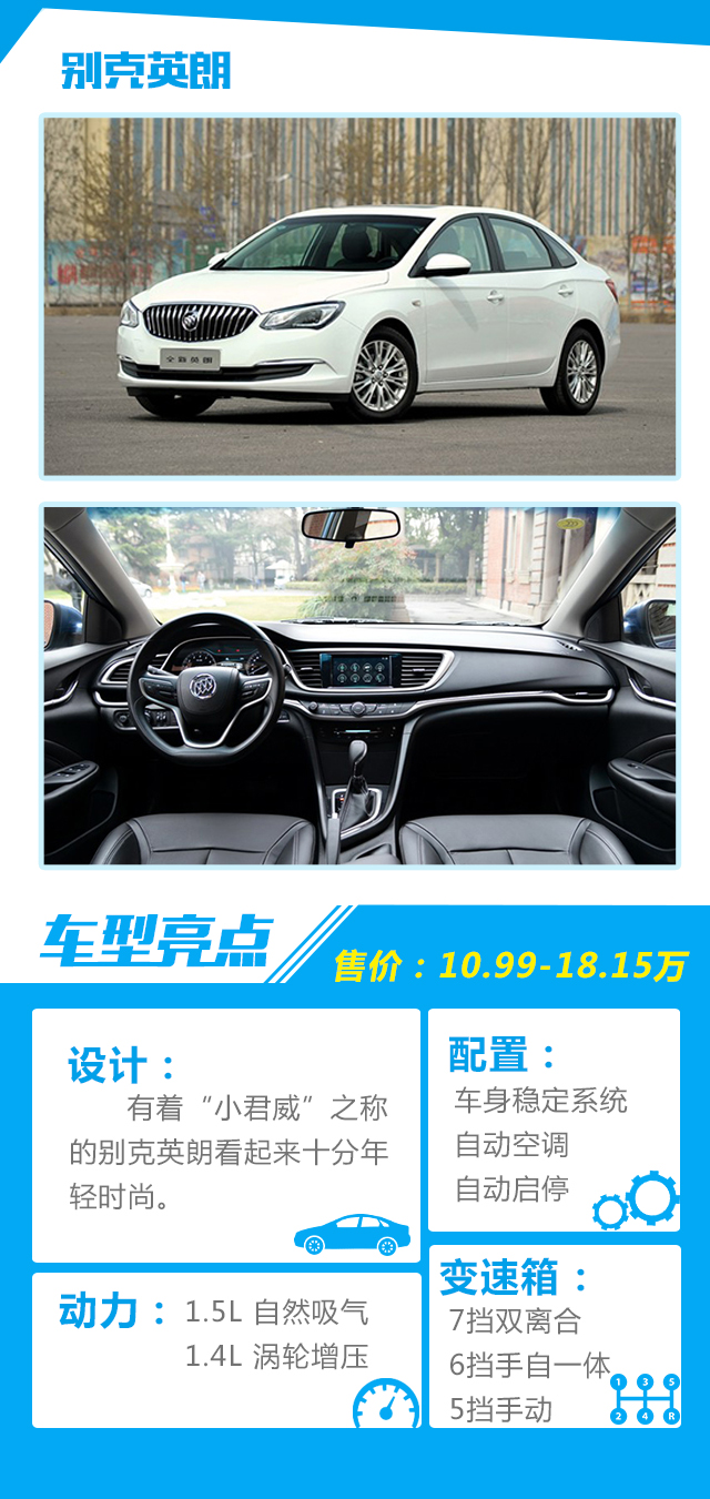点评:英朗的外观非常年轻时尚,特别是那倒L型的日间行车灯,着实吸引了不少年轻人;而且英朗的配置丰富,标配车身稳定系统、日间行车灯这些实用的配置也可以看出它的诚意,在内饰的做工和用料方面也是值得肯定的;但是如果厂家能够在隔音方面再做出一点改进,英朗就真的是一款完美的小车了。