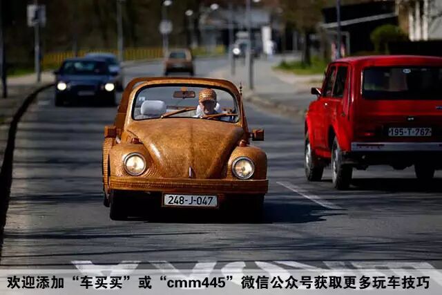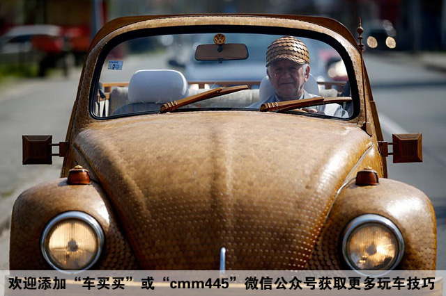 71岁的Momir Bojic从2012年开始就已经着手为其大众甲壳虫进行扮靓,经过两年的工程,终于将5万片橡木装载到甲壳虫上,从轮圈、仪表台、雨刮甚至是车标全都贴上经过自己加工的木头。