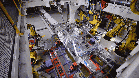 车身车间共有机器人386台,实现车身连接技术100%自动化,整合多种宇航级连接工艺,在工厂首款投产的新美式旗舰轿车凯迪拉克CT6上打造坚固与轻盈兼得的铝合金复合车身,整体强度相对于传统钢框架车体上升30%。