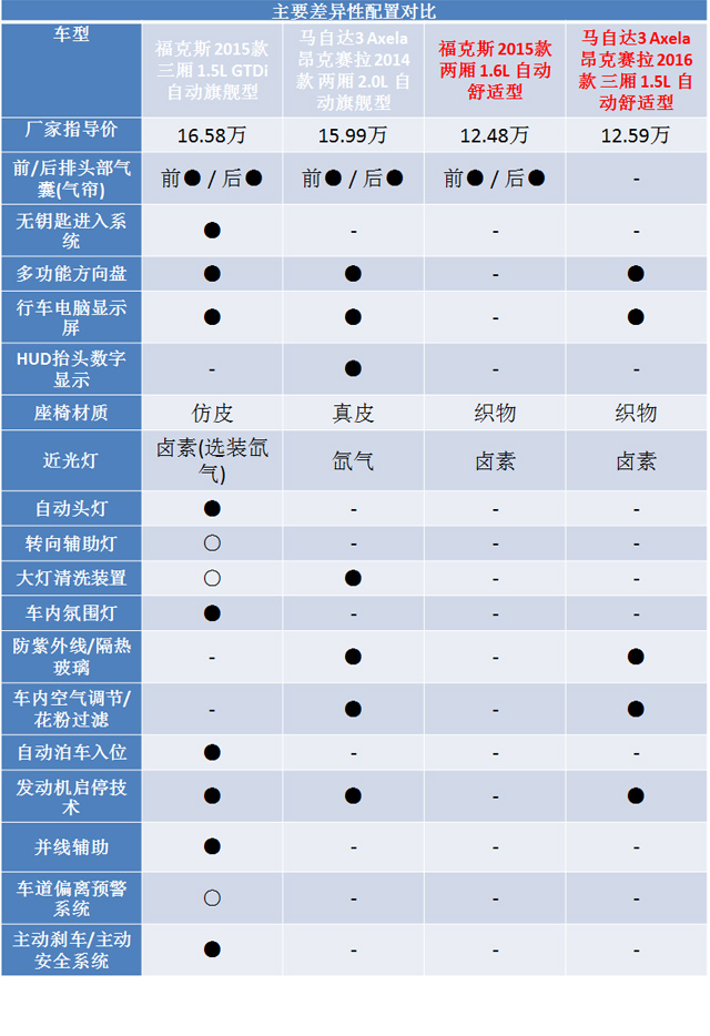 (注:下表中,左边为各自顶配的对比,右边为教授认为较值得买车型对比)