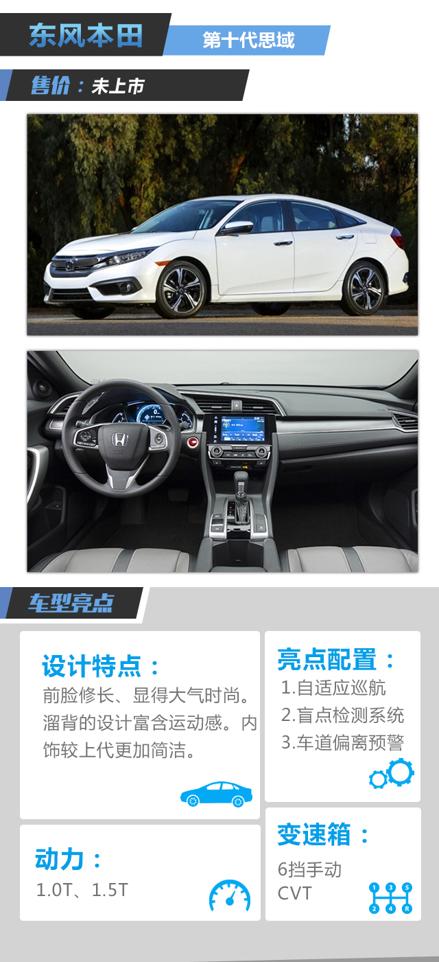 【点评】不仅动力加入了涡轮发动机,性能表现突出,新颖的溜背外观有着不错的运动感。搭载本田超感安全系统之后,安全性进一步加强。4月份将会正式上市,大家可以多加关注。