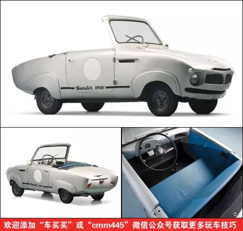 1958年生产的Maico 500来自于德国图宾根,这是一辆完全采用摩托车发动机制造的车型,使用2冲程发动机,452cc拥有18匹马力,设计有4人座因此可以容纳四个成年人乘坐。