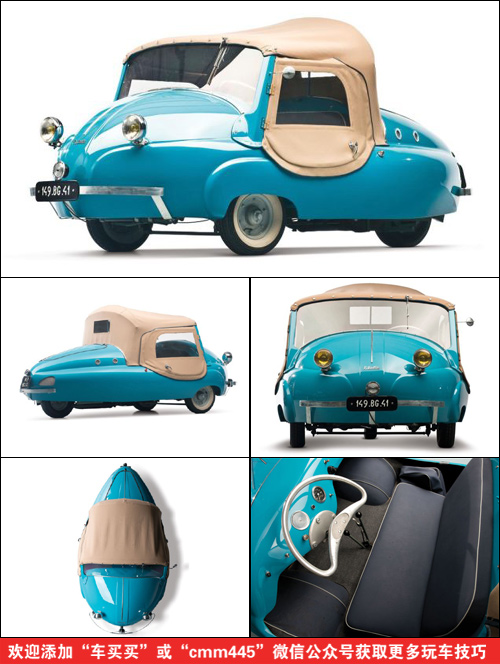 这辆车甚至没有自己名字,因为其独特的造型即使平常的名字也因为造型变得独特。诞生于1955年的法国。拥有7.5匹马力,使用247cc发动机。