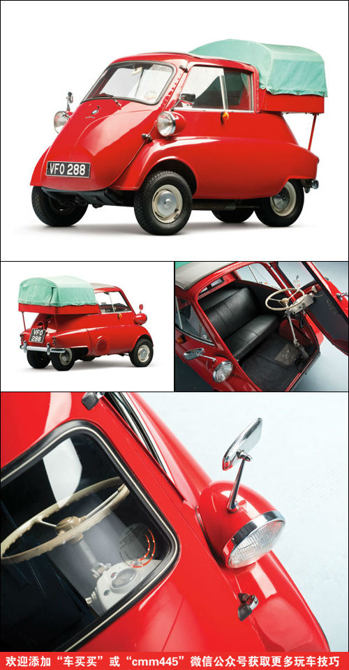 这辆可爱的小皮卡Isetta 300是目前仅存的少数车辆,诞生于1961年英国,不过由于车身太小巧装载货物并不多,当时这车也并不是十分红火。