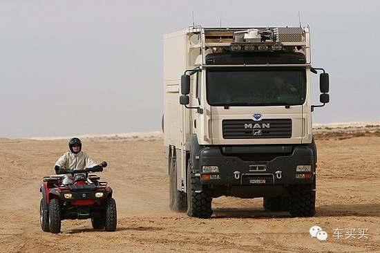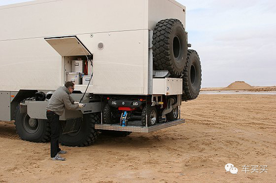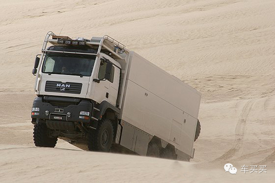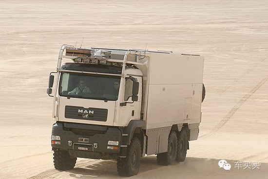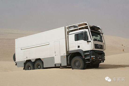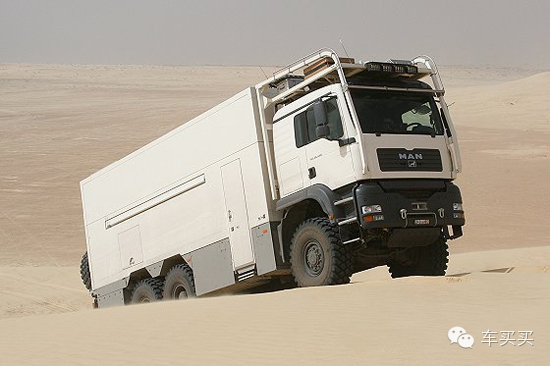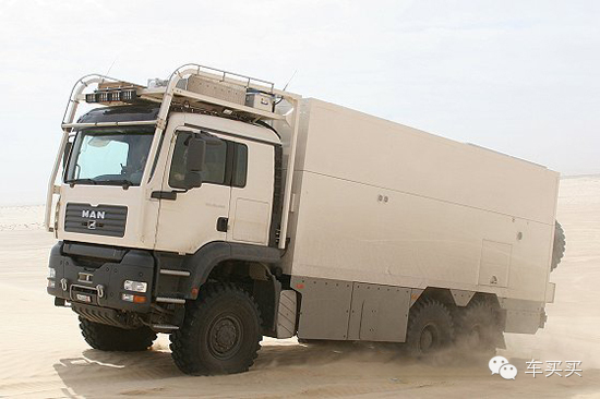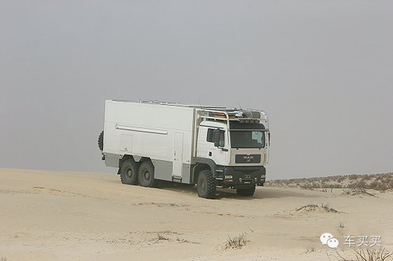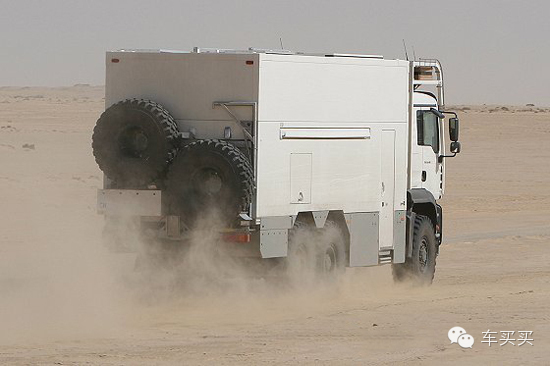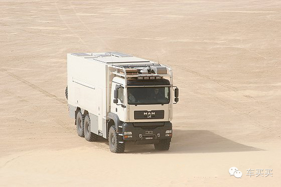 使用德国MAN军用越野底盘,车如其名,这是一款适合“男人”的大玩具!480马力发动机,全时六轮驱动,前中后五把差速锁,轻松搞定复杂地形!800升超大油箱,续航能力可达2500公里。厢体使用6CM玻璃钢三明治复合板,终生不老化、材质轻、抗腐蚀、柔韧度强。整车隔热保温,内部装有高热量暖气系统及高品质制冷空调,可抵御-45℃-50℃极端气温,所有油路水路均防冻。全自动轮胎充放气、胎压监测系统,驾驶中可一键操控。