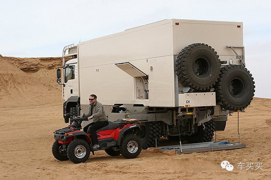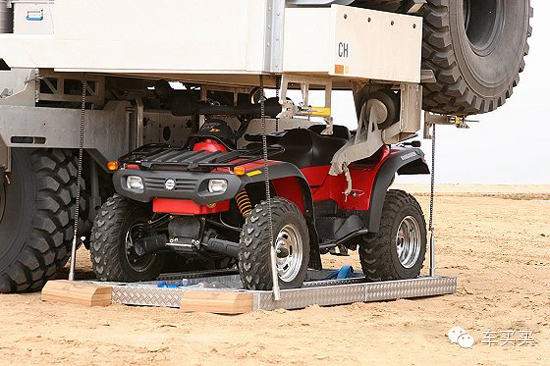 随车可携带一台ATV全地形四轮越野摩托车,独立车库,定制升降平台: