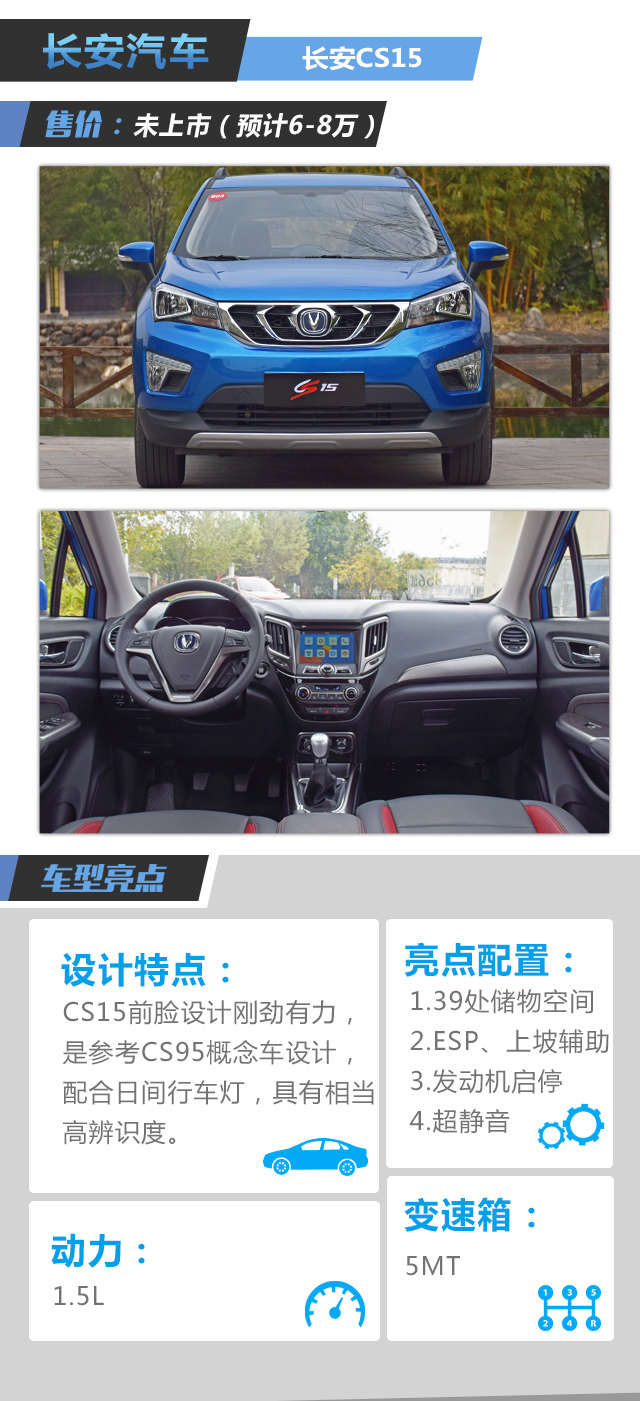 长安CS15目前先上市的是1.5L车型,搭配5MT变速箱,从试驾的实际感受来看,这道动力系统还是可圈可点,全完够用。据了解,未来这款车型还会搭载一款双离合变速器,这是一款湿式双离合!大家敬请期待吧。