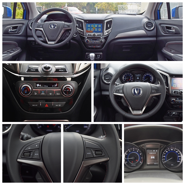 CS15中控延续长安CS系列的家族风格,中控的形状就像是长安的LOGO,简洁大方。多功能方向盘集成定速巡航、音量调节等功能,手感软硬适中,另外该车采用双炮筒式仪表盘,还是满贴近消费者对设计的追求。