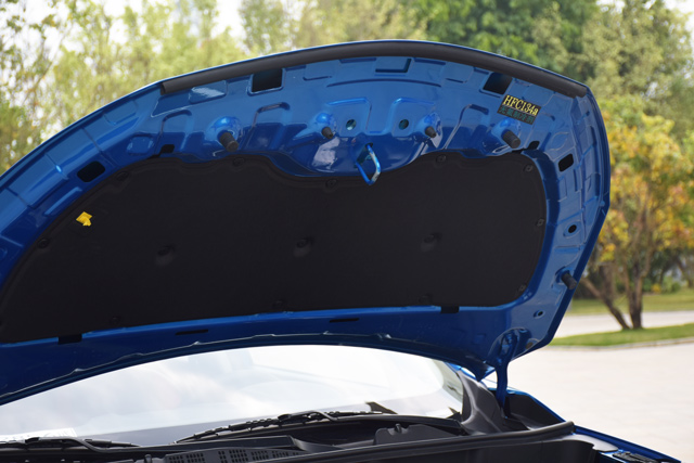 另外还有一键启动、定速巡航等,该车还配备:博世ESP车身电子稳定系统 9.0 、胎压监测、倒车影像、坡道辅助。还有发动机启停功能(该功能默认关闭,用户需要时自行启动)。值得说一下,该车停下来的时候,完全感觉不到到底打火了没有,除了启停功能给力之外,还多得NVH静音,该车的产品经理跟教授说这次在静音上花了不少钱。下图是发动机盖隔音棉。
