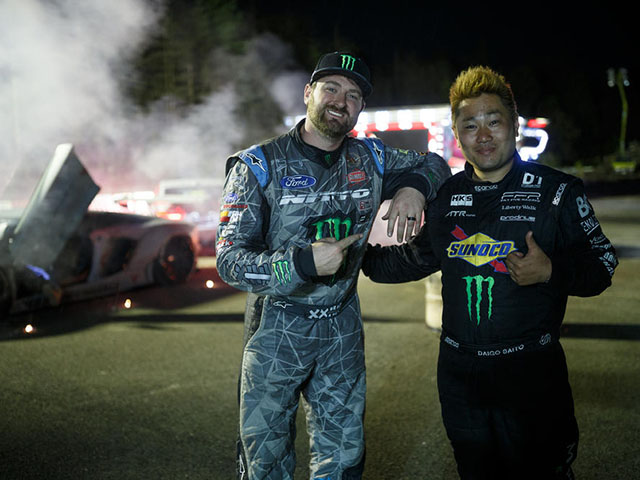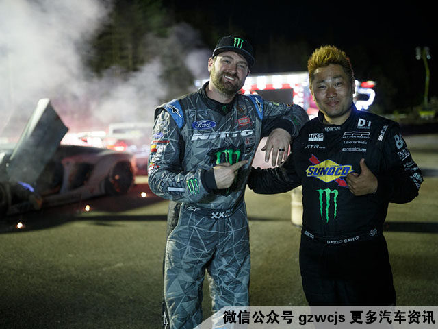 就是这两位淫兄。斋藤太吾是有名的亚洲飘移车手,长期活跃于D1GP和FD等极具代表性的飘移赛事中。而Vaughn Gittin Jr.可能大家会更熟悉点,因为他曾是极品飞车15的代言人,曾是FD USA(Formula Drift),北美最著名的飘移比赛冠军。最具代表性的赛车莫过于Monster Energy涂装的野马了。