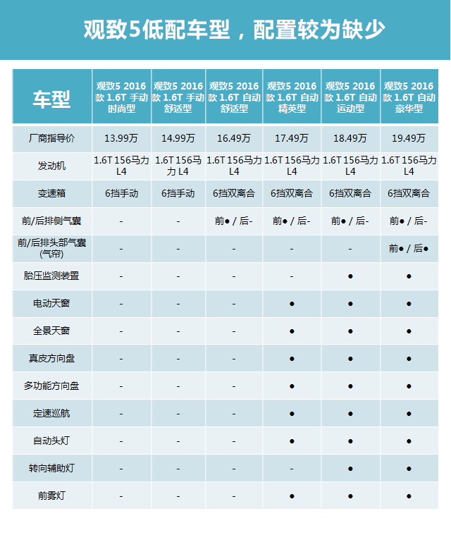 虽然博越要到本月的26日才上市,但根据吉利公布的信息来看,博越将搭载2.0L发动机和1.8T发动机。传动方面,与两款发动机匹配的是6速手动或6速自动变速箱。根据教授的经验,2.0L的动力版本将会是主推车型。而观致5则全系搭载一款1.6T的发动机,传动为6挡手动变速箱或6挡双离合,动力单元紧追大众、通用等欧美车企。