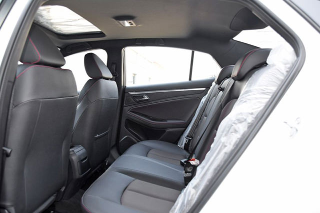 内饰设计走的是运动风格,黑色内饰加上红线缝制凸显运动氛围,显示屏设计很有特点,按键设计规整,简单易用,中控台做工有待提高,接缝处理的还算细致。