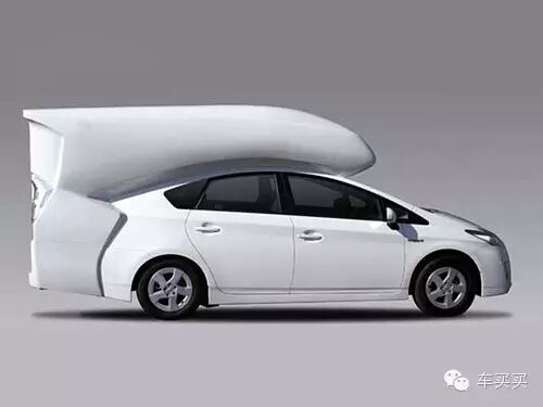 外观方面,普锐斯房车的采用玻璃纤维材料制作,整个套件的加持让普锐斯的长度增加了520毫米,高度增加了560毫米。从外观上看,和所有的房车一样,普锐斯房车的车顶上也出现了一个小型的卧室,而流线型的设计让这个增加的空间看上去比一个车顶行李箱也大不了多少。整套房车套件并没有破坏普锐斯原有的车身结构,甚至连尾灯也保持了普锐斯原来的造型,增加这一套件只需要卸掉尾灯即可。