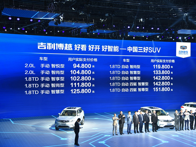 | 吉利博越 官方指导价 (单位:万元) | |||
