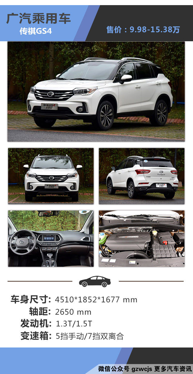 简评:传祺GS4是有能力竞争最美国产SUV的车型,但是内饰设计比较普通,用料和做工在同级别SUV中算是优秀级别。目前拥有1.3T和1.5T发动机,动力输出都不错。